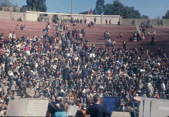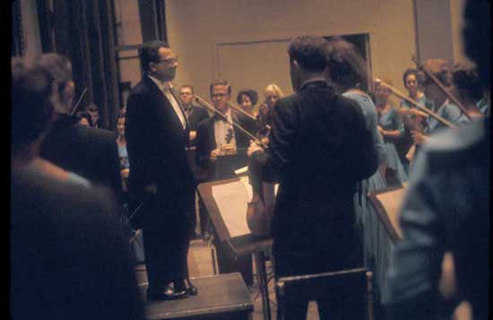 Final concert, June 1, 1964, Lima, Peru. Brahms Symphony #2 in D major op.73Program change announcement (Goodman)
